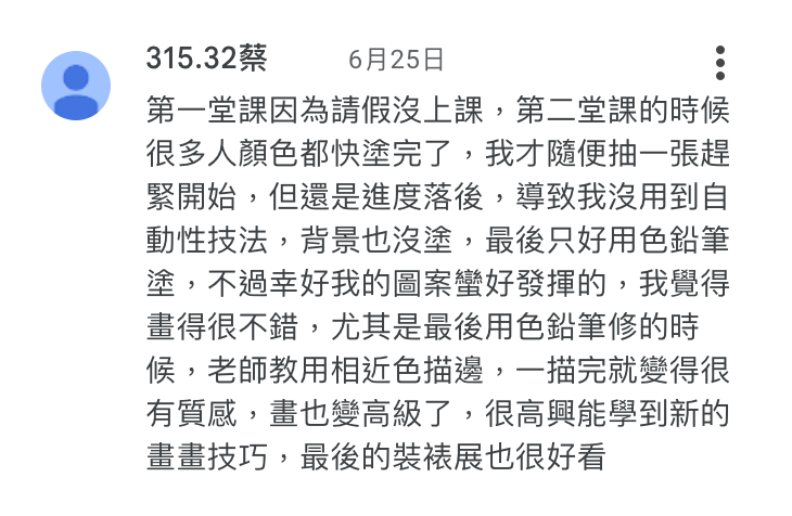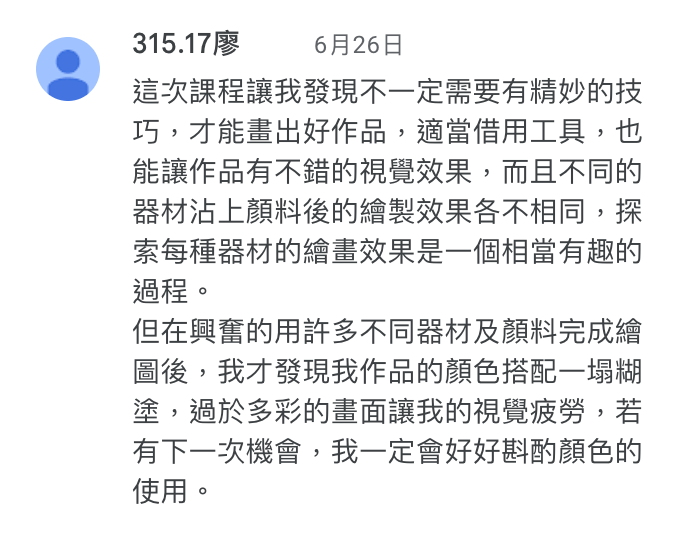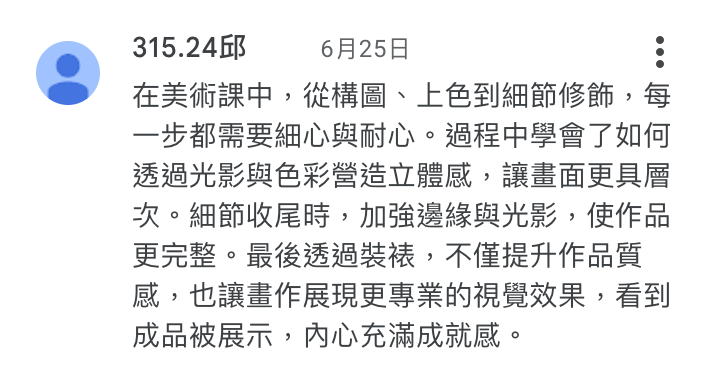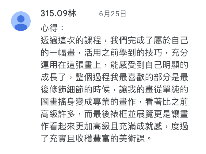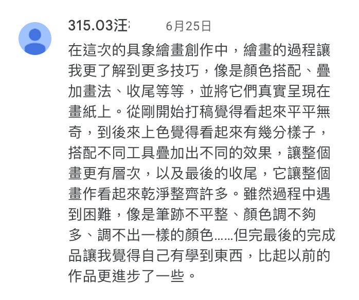 學生能清楚知道學習目的在於光影觀察而非輪廓描繪,且透過這堂課能夠明確感受到提升能力。