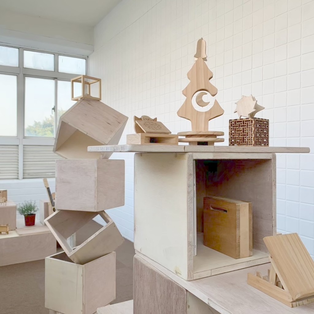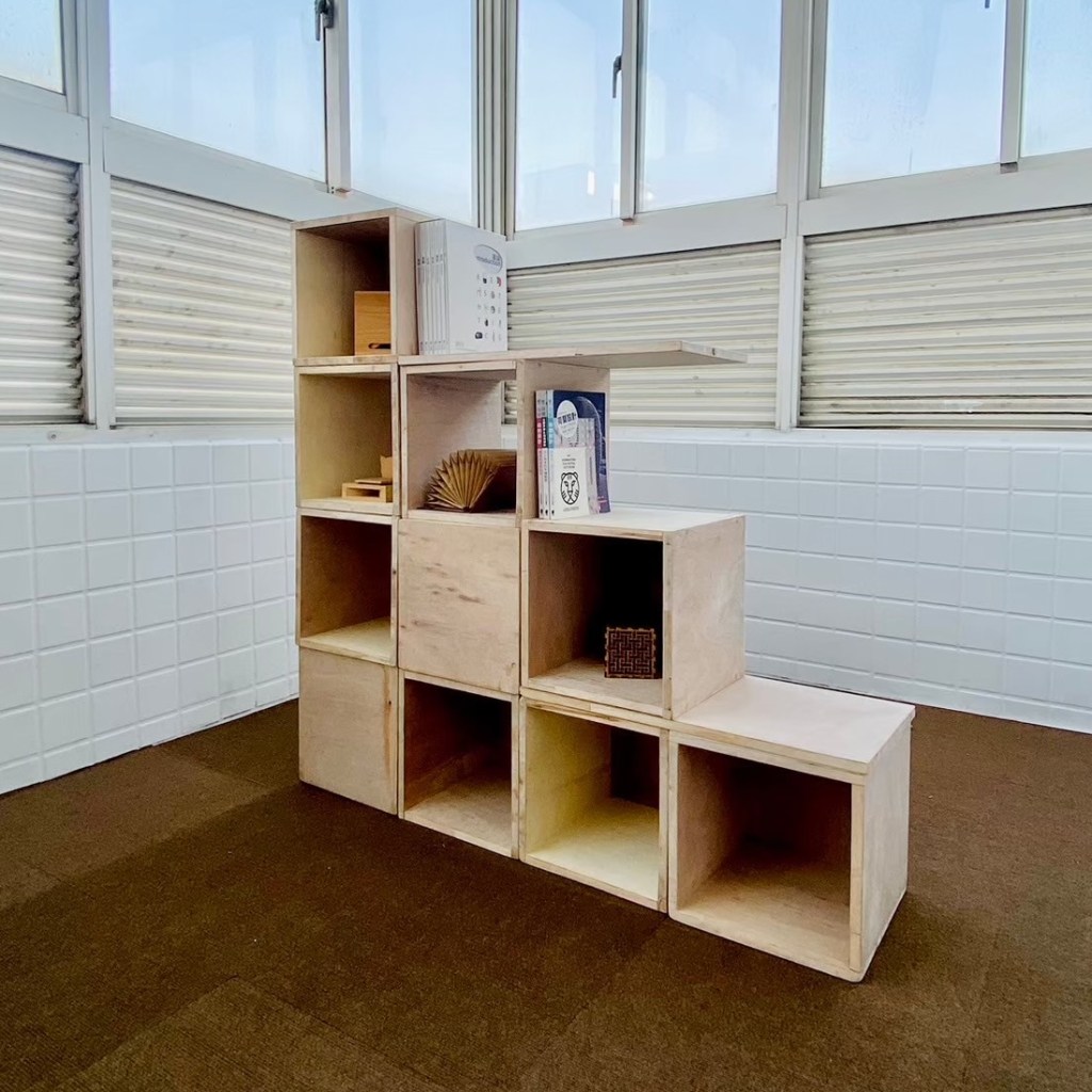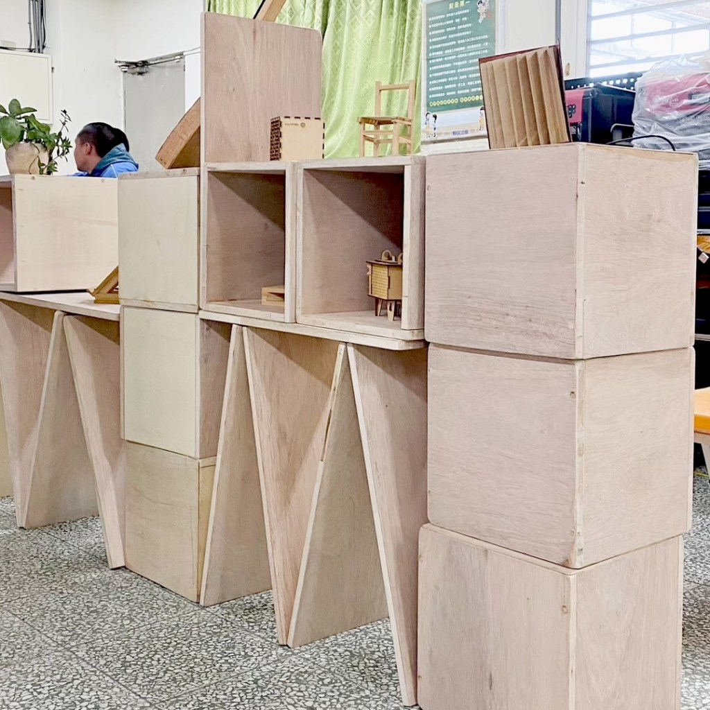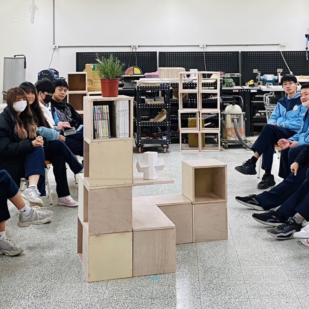 目標:將自製的單元木箱、層板組合成閱讀空間家具,再變化成展場,思考力學與展呈方式,最後帶至校園角落進行移地佈置實作練習,結合校園美感改造與閱讀空間計畫。