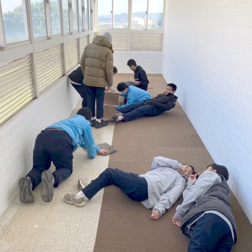 購買油漆帶領同學前往改造空間。購買咖啡色地墊帶領同學前往鋪設。準備一些傢飾品、書籍等道具供同學擺設練習。