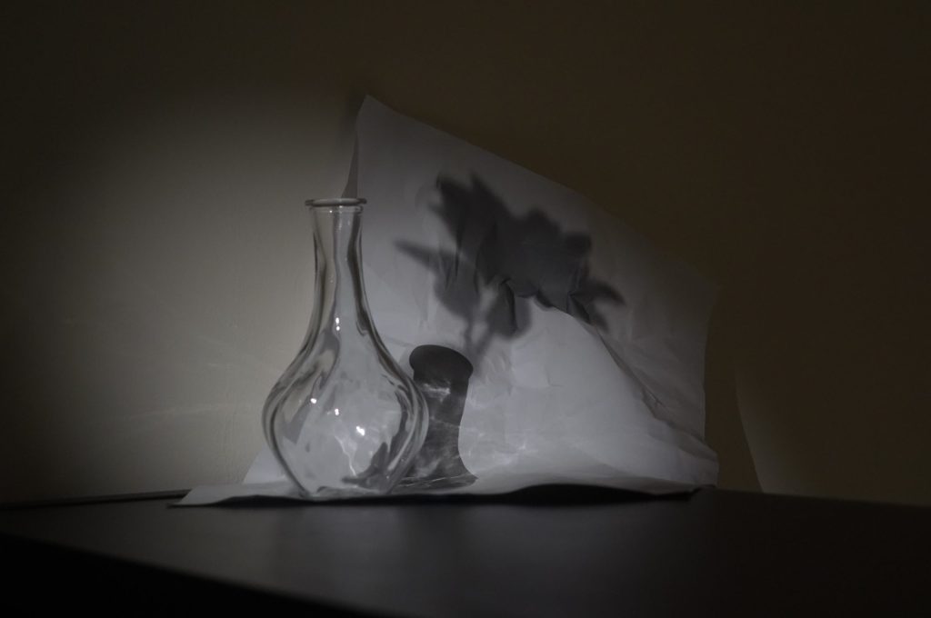 它同時暗示著「無常」與「永恆」。花沒插進瓶中,卻留下了影子,就像有些人,有些經驗,在我們心中留下印記。展覽本身也如同這朵花,在展期之內短暫綻放,之後便隨光而逝。你無法永遠擁有它,但存在過腦海的那一刻是真實的。